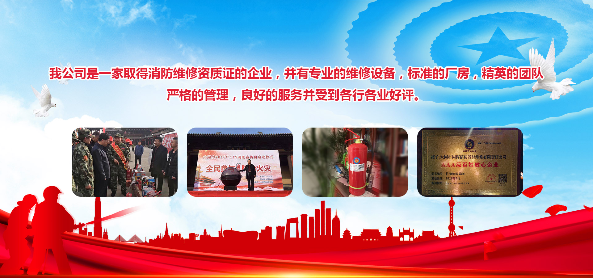 大同市同渾消防器材維修有限責(zé)任公司,位于大同市同泉路389號,始建于2000年,是公安部消防局定點銷售和維修的企業(yè),歷經(jīng)多年的創(chuàng)建、發(fā)展和拼搏,現(xiàn)有多家消防器材廠商供應(yīng)我公司,并有現(xiàn)代化維修設(shè)備,標準的廠房,嚴格的管理,優(yōu)良的設(shè)備,良好的服務(wù)并受到各行各業(yè)的好評。總經(jīng)理劉國玉嚴格管理,嚴格要求,精益求精,認真負責(zé),帶領(lǐng)團隊熱烈歡迎各界朋友顧客光臨。